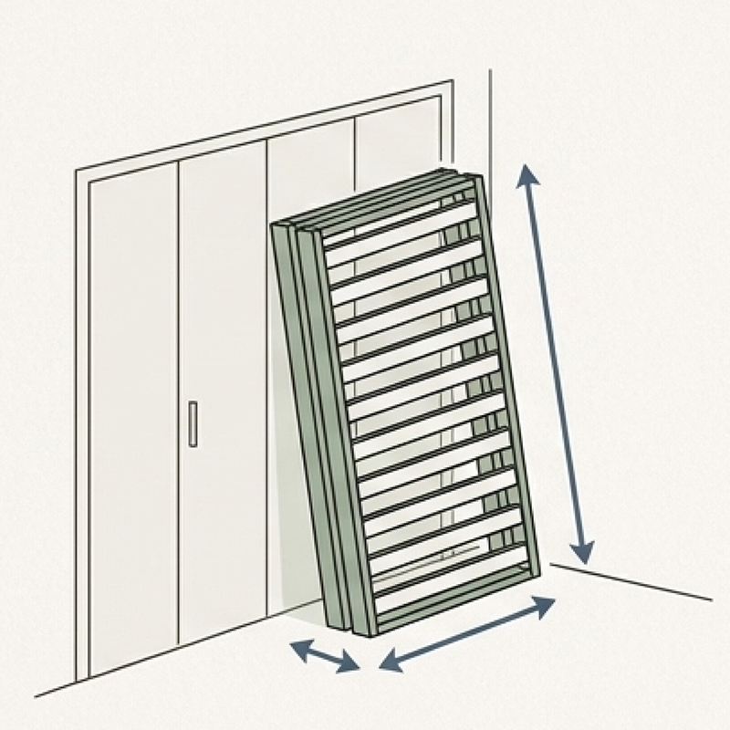 部屋の隅に立てかけて収納したい場合、折りたたんだ際の奥行きが想定していたよりも厚いと、邪魔になってしまう可能性があります。クローゼットや押入れに収納する場合は、扉や奥行きのサイズを事前に計測しておきましょう。