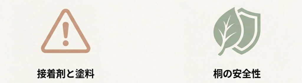 毎日長時間使用するベッドだからこそ、家族の健康を守るための「安全性」と「快適性」は最も重要な要素の一つです。通販で手軽に購入できるからこそ、見落としがちな桐ベッドの安全性、特に塗料や接着剤、そして天然木特有のにおいについて深掘りして解説します。