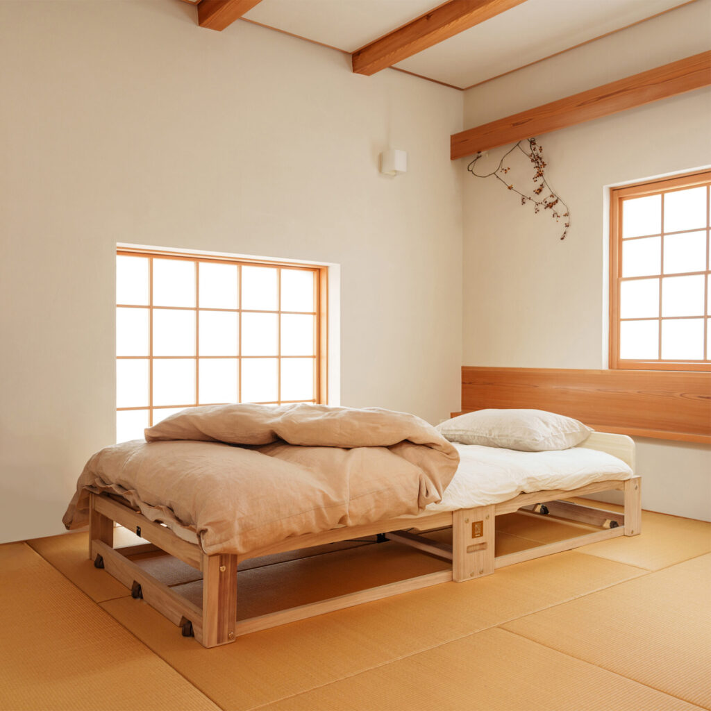 さらに、桐の調湿効果が畳と布団の間の湿気を逃がし、カビの発生を強力にガード。白木の風合いも畳と美しく調和します。