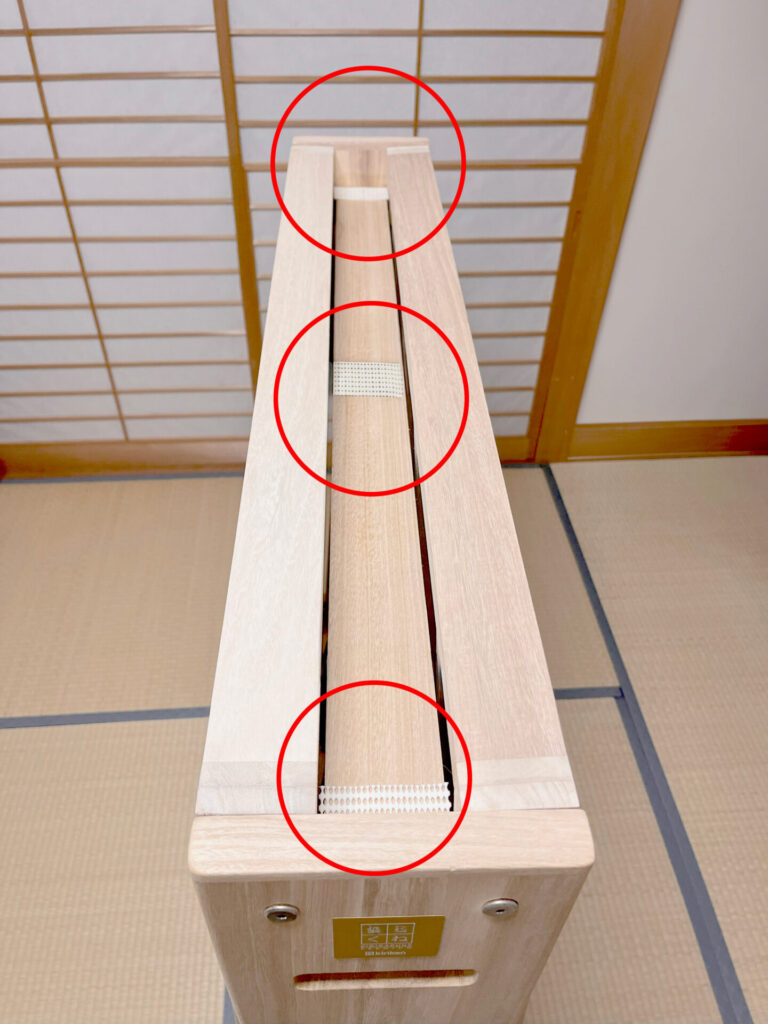 「桐らくね」は天然木を使用しているため、気温や湿度によって木材が湿気を吸い込んだり吐き出したりしています。